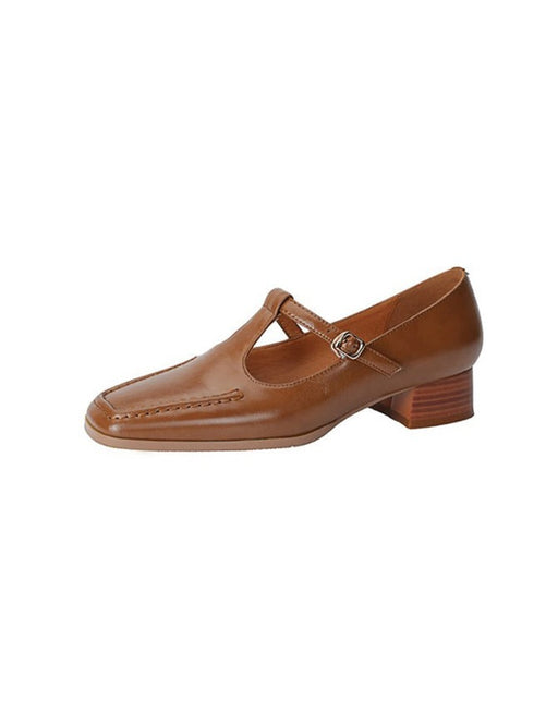 Ver todos los detallesTacones Mary Jane vintage de piel auténtica con punta cuadrada y una sola tira