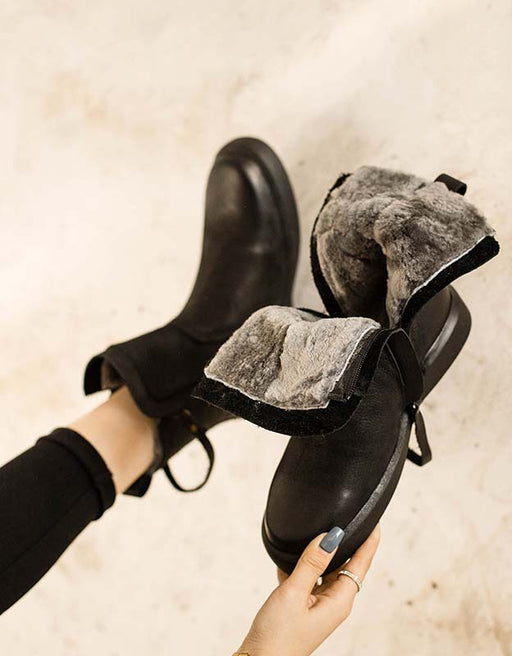 Ver todos los detallesBotas de invierno de cuero retro con forro de piel