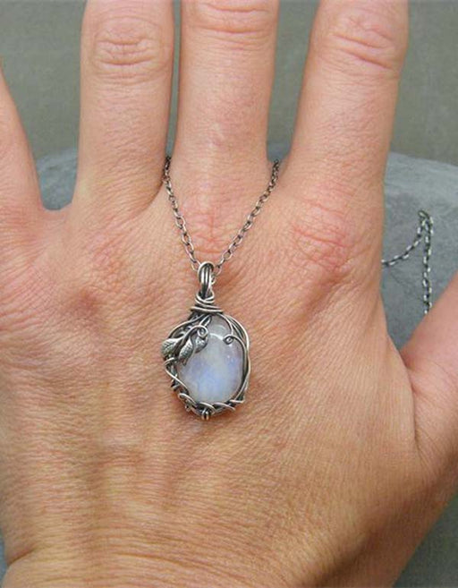 Elegantes pendientes de piedra lunar bañados en oro blanco