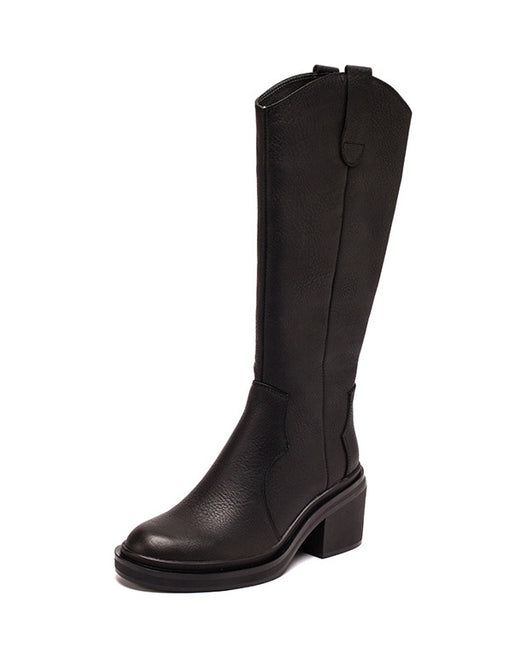 Ver todos los detallesBotas largas retro de piel con tacón grueso | Zapatos de regalo