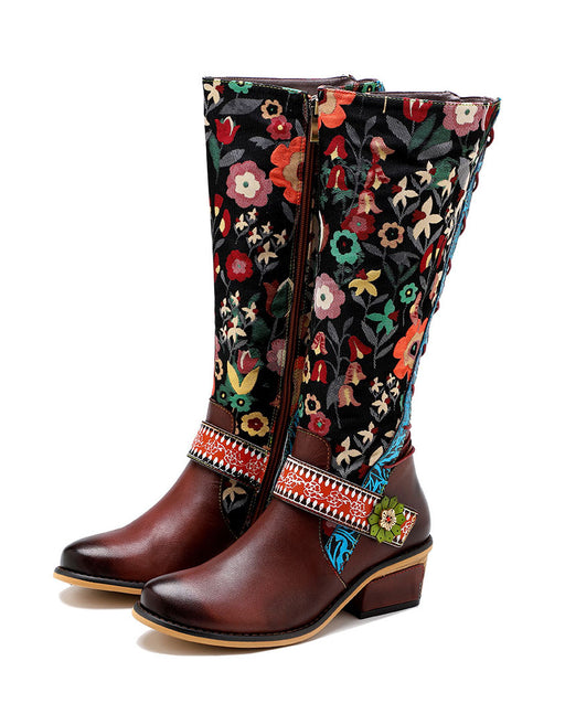 Ver todos los detallesBotas largas vintage con estampado floral hechas a mano, talla 36-42