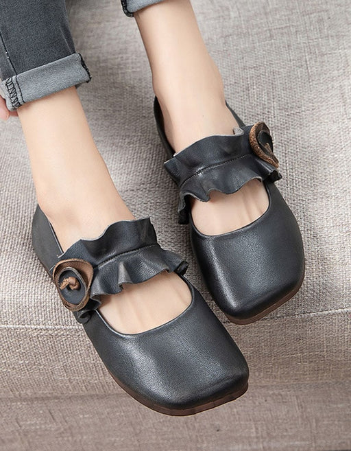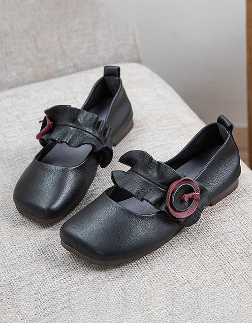 Ver todos los detallesZapatos planos con hebilla de cuero retro hechos a mano para mujer
