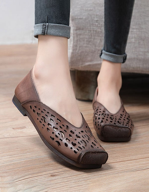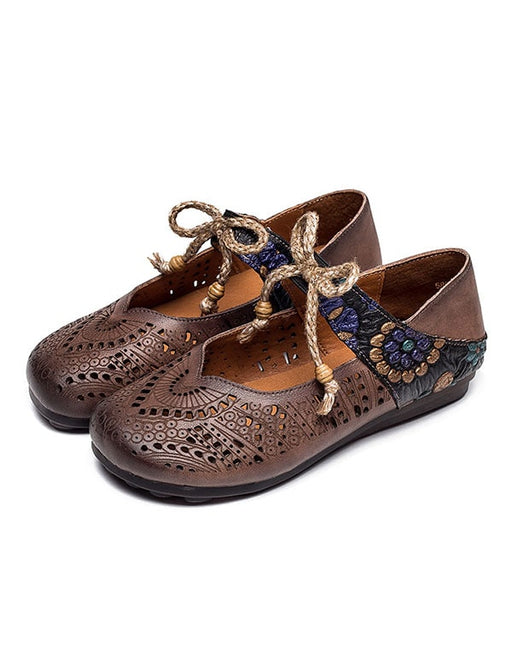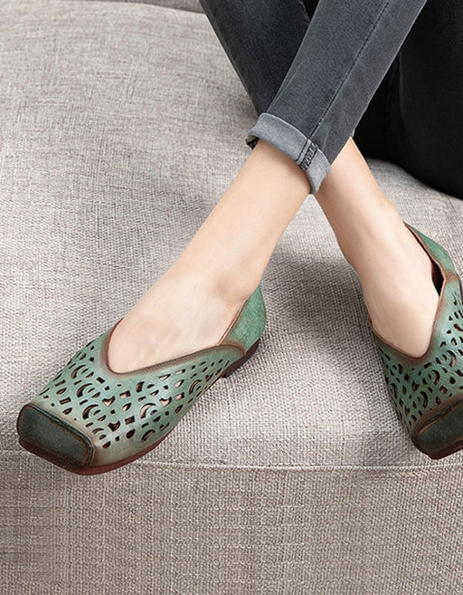 Zapatillas planas de hojas de cuero retro hechas a mano