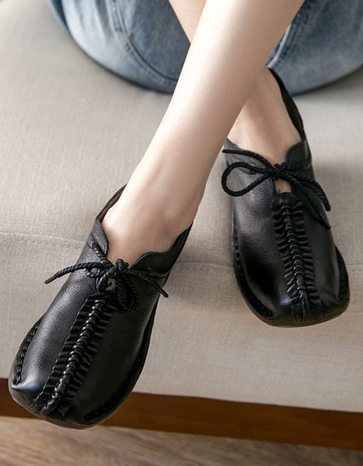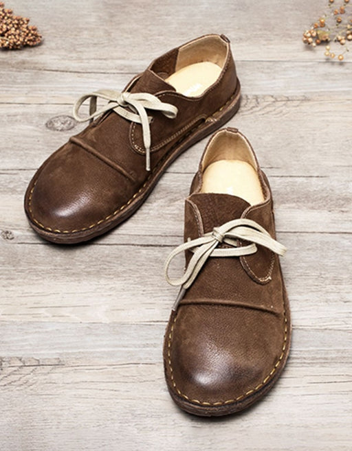 Ver todos los detallesZapatos planos retro hechos a mano, cómodos y con cordones para primavera