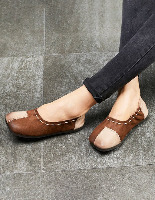 Ver todos los detallesZapatos planos de cuero retro hechos a mano con parches