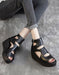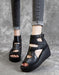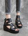 Sandalias de cuña negras con punta abierta de cuero para verano, talla 42