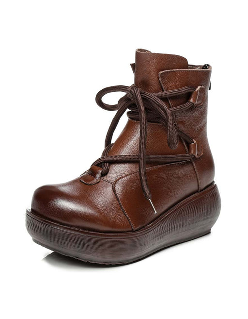 Botas de cuña retro con cordones delanteros para invierno y otoño