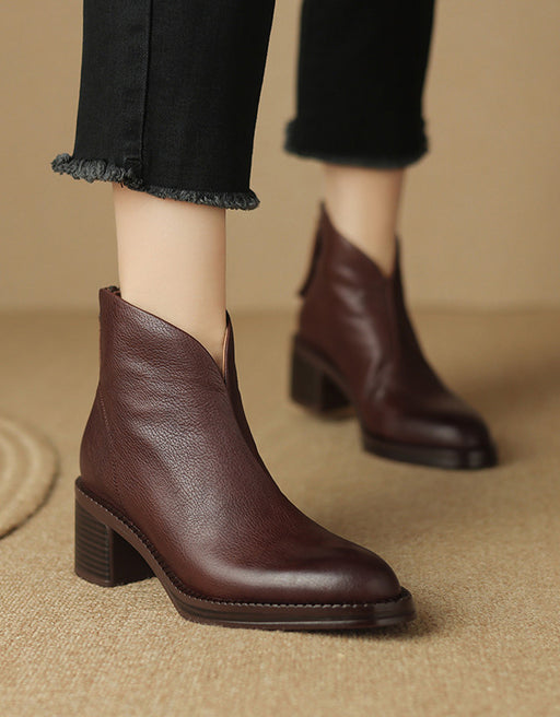 Ver todos los detallesBotas de tacón grueso de cuero retro hechas a mano