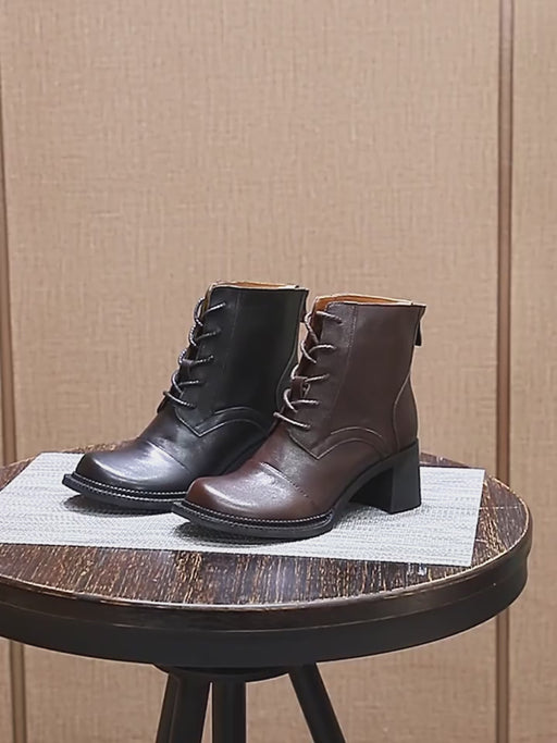 Ver todos los detallesBotines de piel auténtica con tacón grueso y cordones