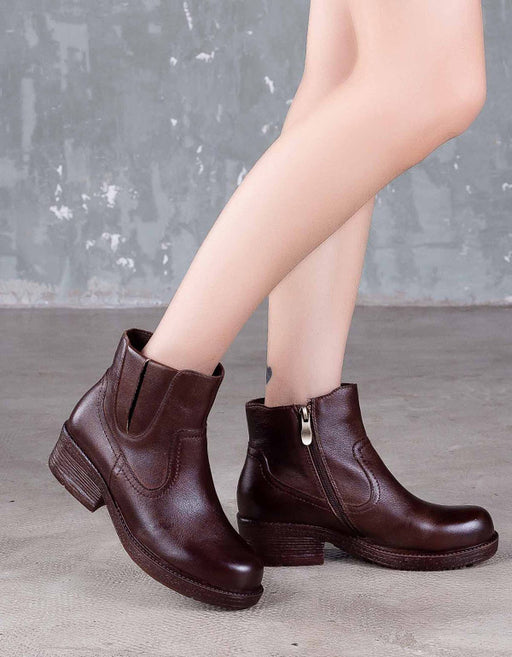 Ver todos los detallesBotas cortas retro gruesas hechas a mano de cuero