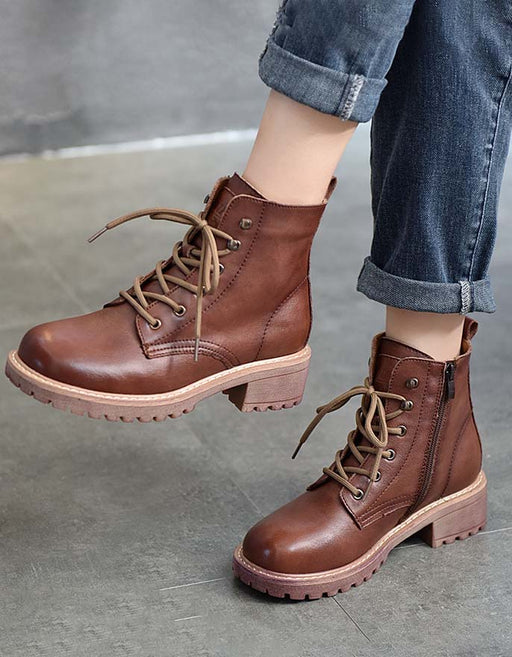 Ver todos los detallesBotas de combate de tacón grueso de cuero estilo retro para otoño e invierno