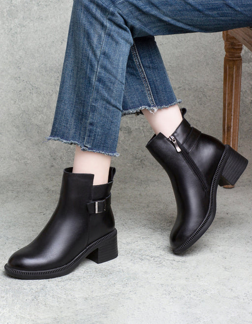 Ver todos los detallesBotas gruesas y cómodas de piel de vaca con punta redonda