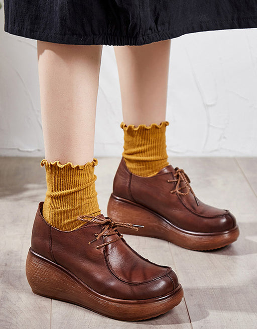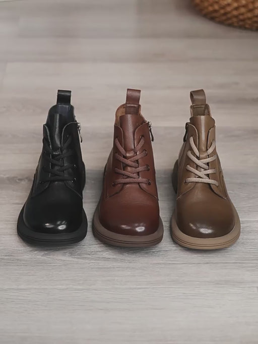 Botas retro antideslizantes con plataforma y cordones para mujer