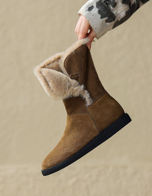 Botas de ante de invierno antideslizantes e impermeables con piel