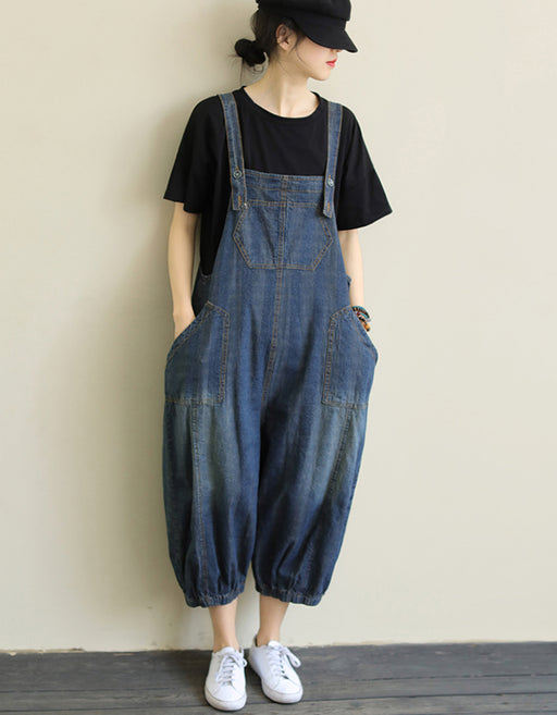 Mono harén holgado de mezclilla con estampado para mujer
