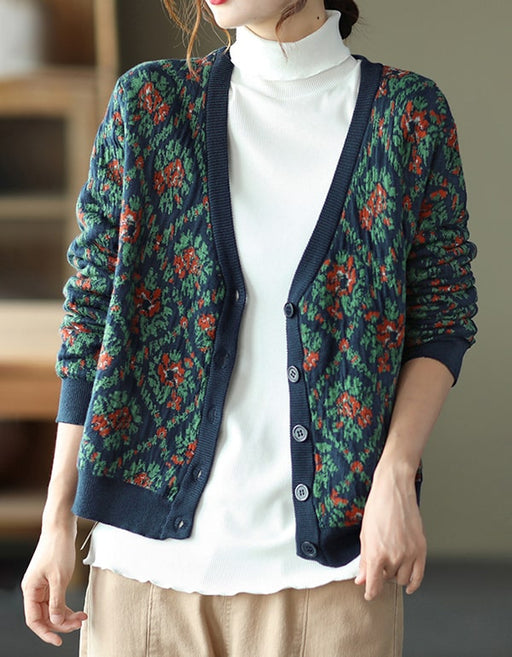 Ver todos los detallesCárdigan de punto holgado con estampado floral y cuello en V estilo vintage