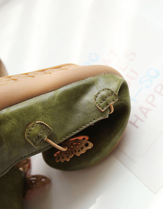 Zapatos planos retro de cuero suave con diseño de mariposa