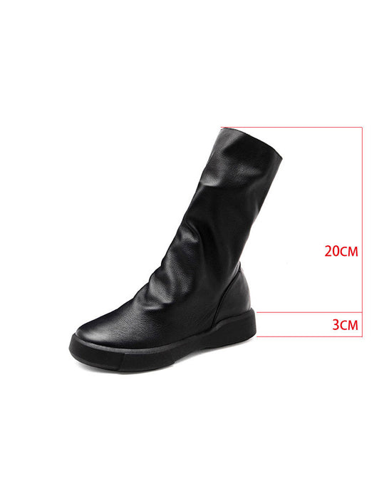 Botas de invierno de media pantorrilla de piel suave hechas a mano, talla 34-43