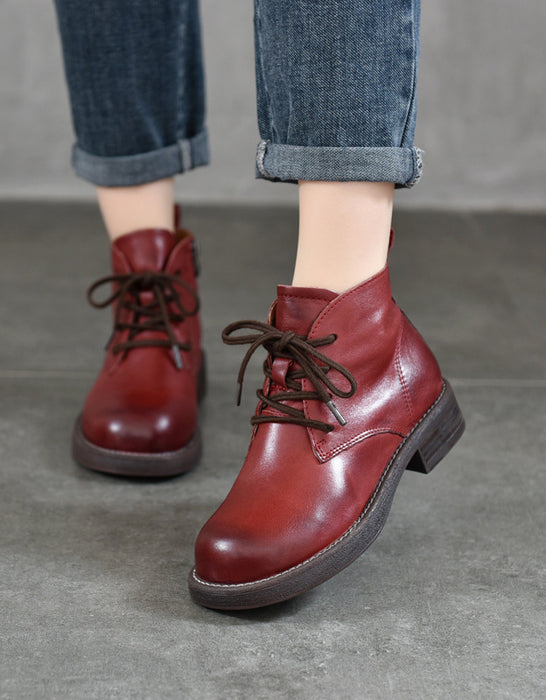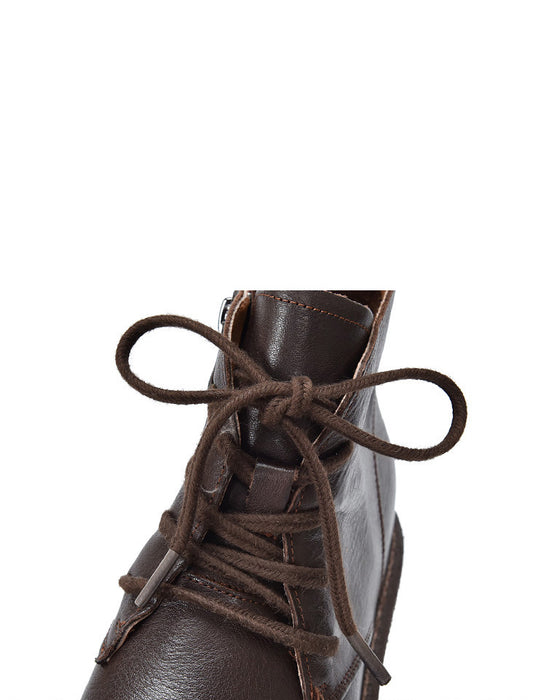 Botas planas retro con cordones de cuero cómodas hechas a mano