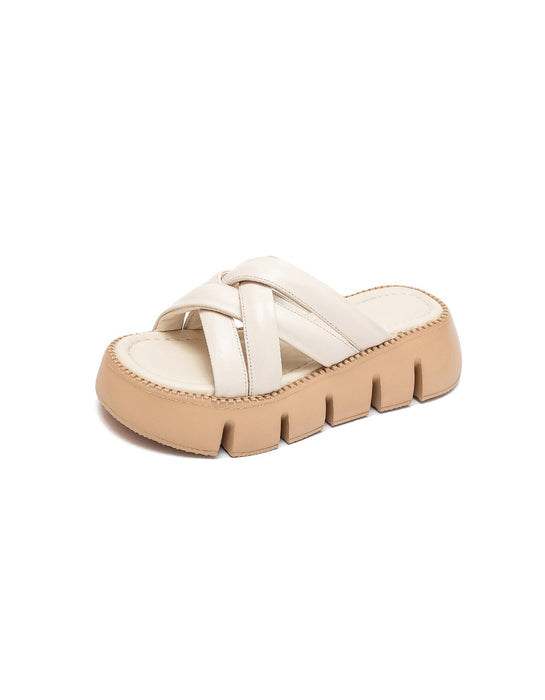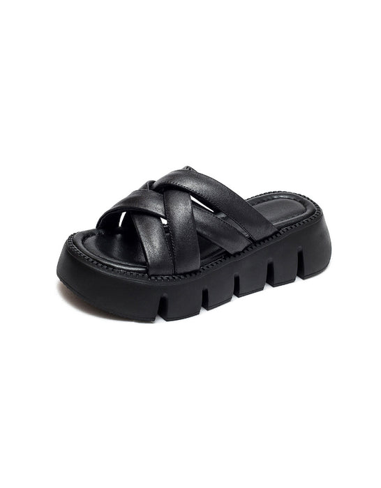 Pantuflas de plataforma tejidas de cuero cruzado para verano