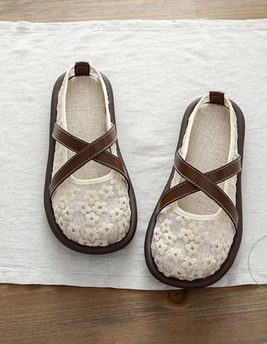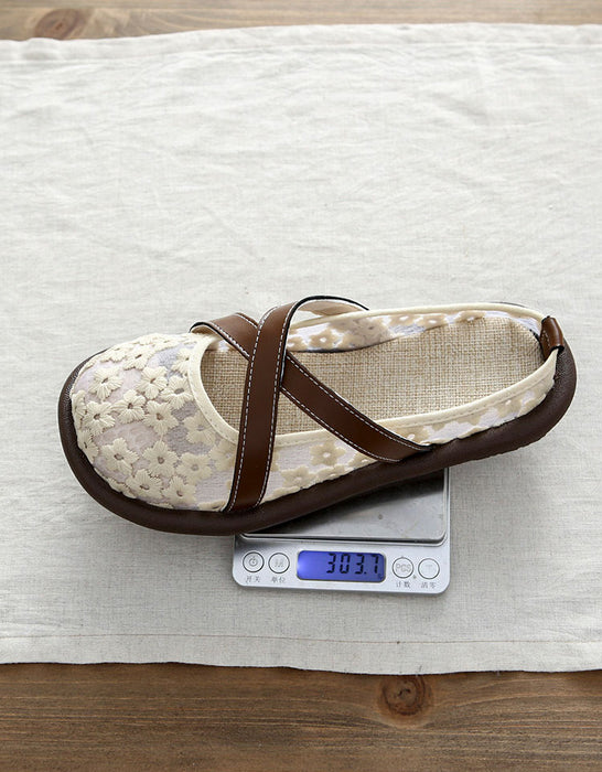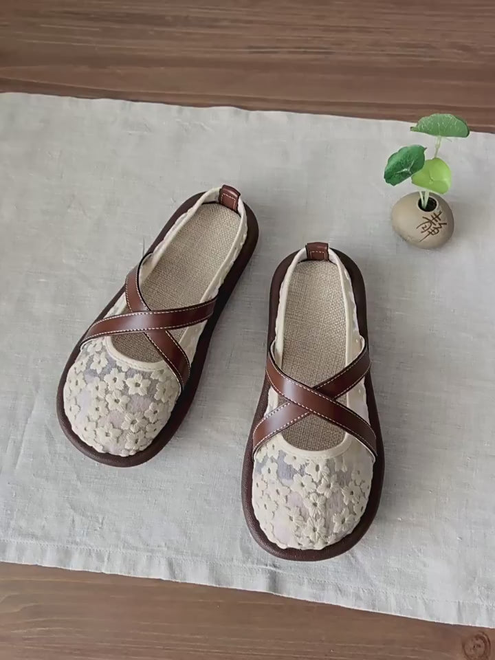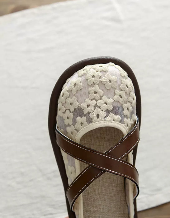 Pantuflas con bordado de encaje transpirable con tiras cruzadas