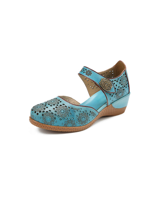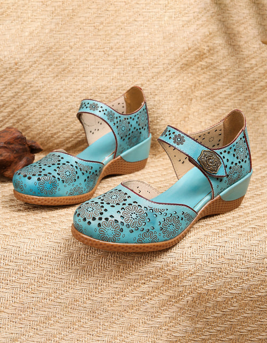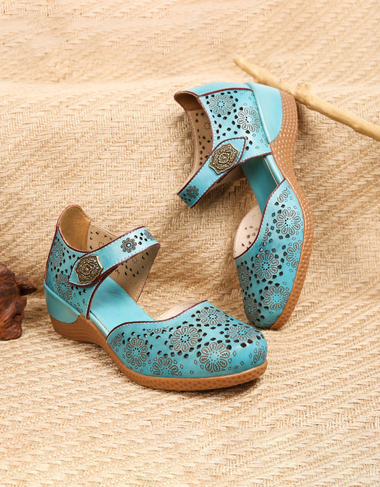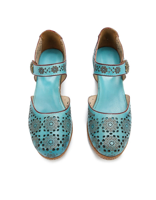 Sandalias de cuña con tiras en el tobillo y punta cerrada de estilo étnico, tallas 46 a 42