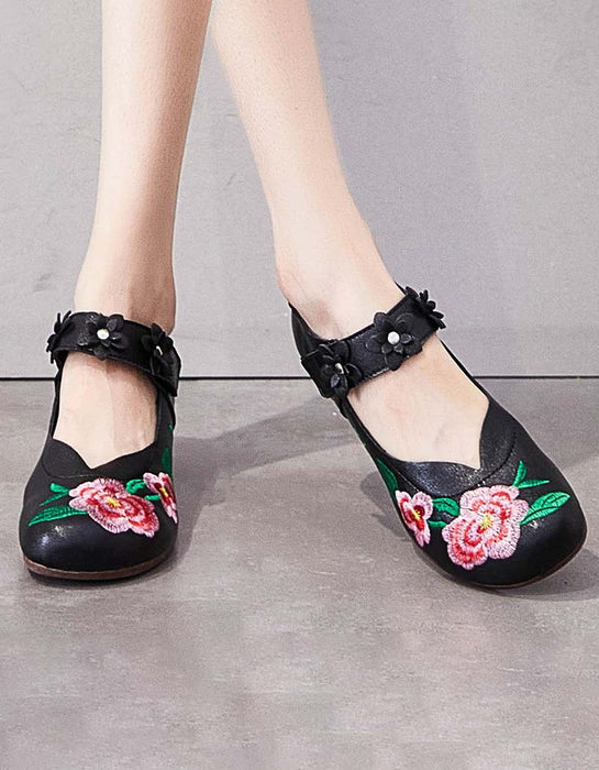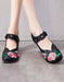 Sandalias gruesas retro con bordado de flores de estilo étnico