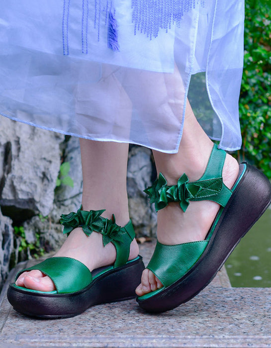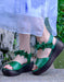 Sandalias de piel auténtica con punta de pez de color verde