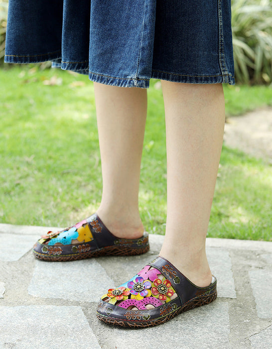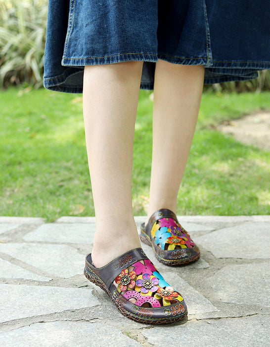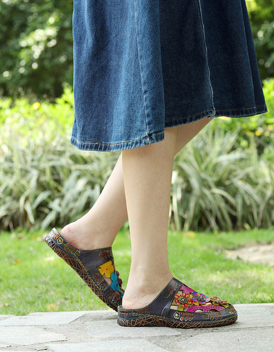 Pantuflas étnicas retro de piel auténtica frotadas a mano, talla 36-42
