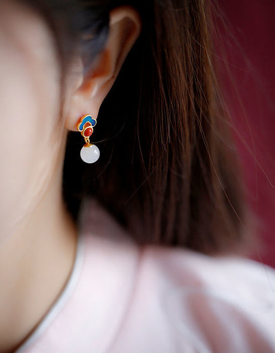 Pendientes colgantes retro de jade hetiano con incrustaciones bañados en oro