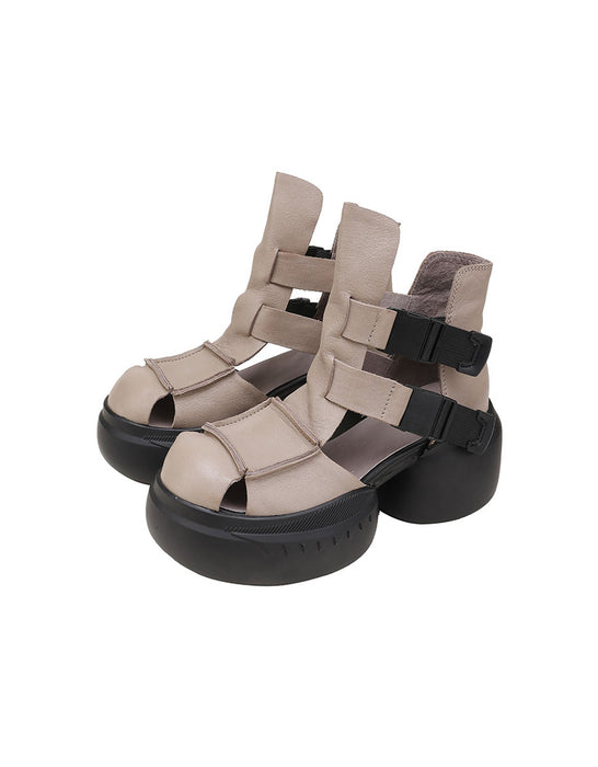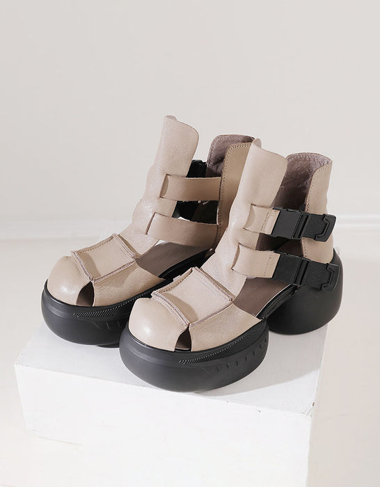 Sandalias de plataforma con punta cerrada, cómodas y retro, hechas a mano