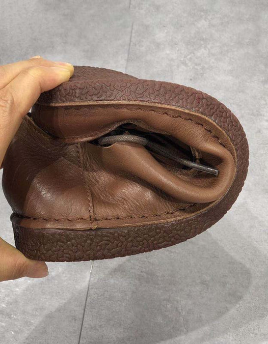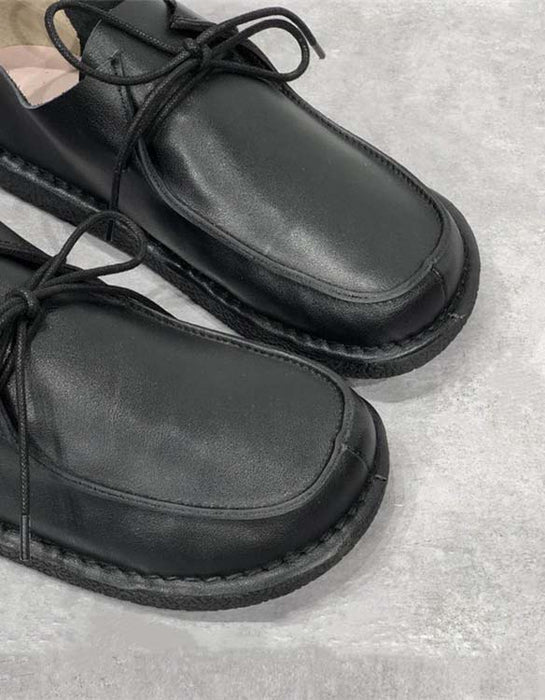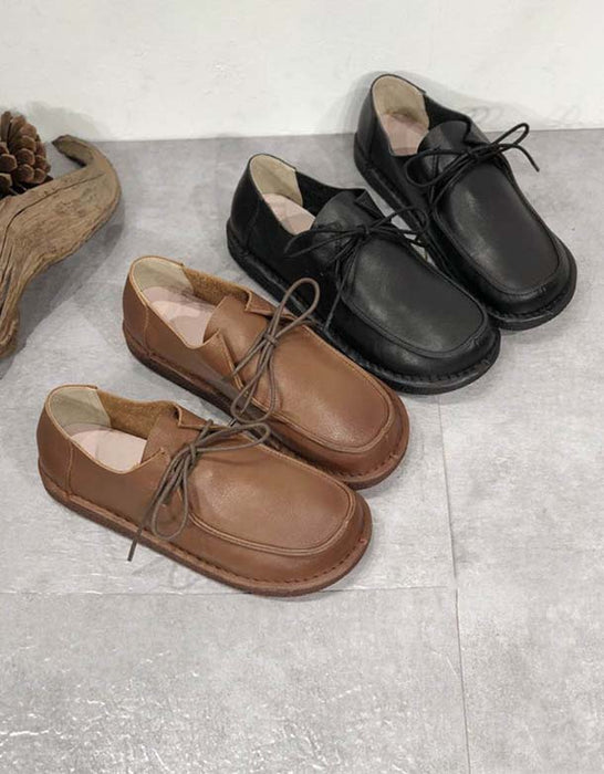 Zapatos planos retro de cuero suave y cómodos con cordones