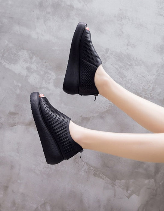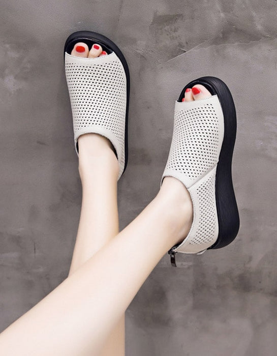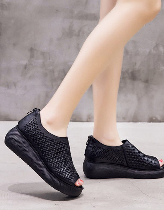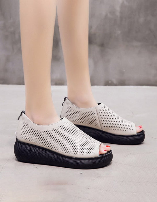 Sandalias de cuña de cuero con punta de pez para mujer para verano