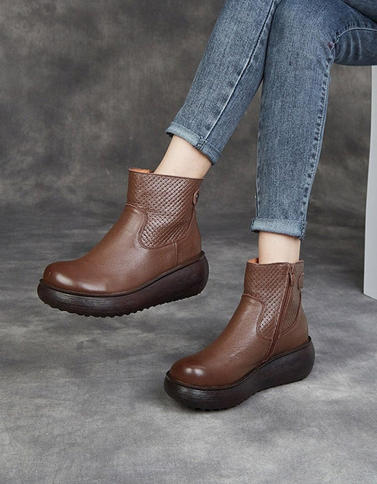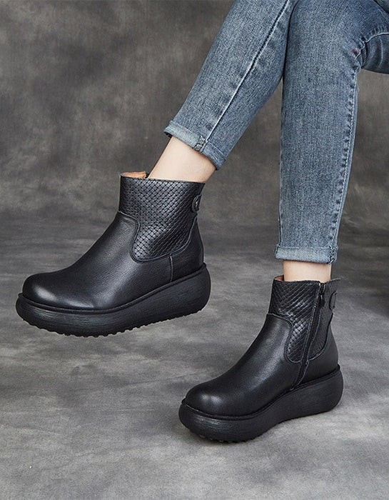 Botas de plataforma cómodas de cuero para otoño e invierno