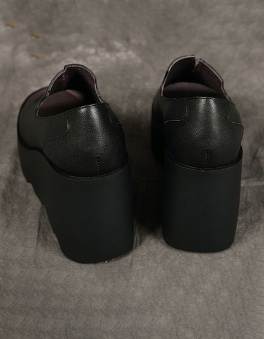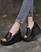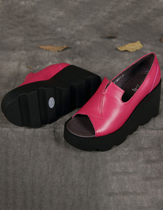 Sandalias de moda con punta de pez y tacones de cuña de cuero