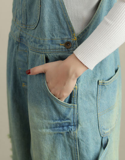 Oversize Distressed Casual Loose Denim Wide Leg Jumpsuit