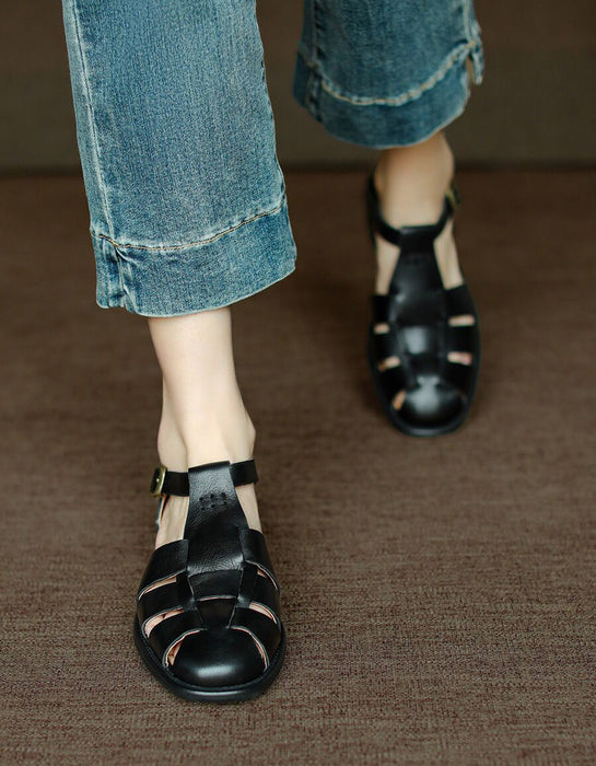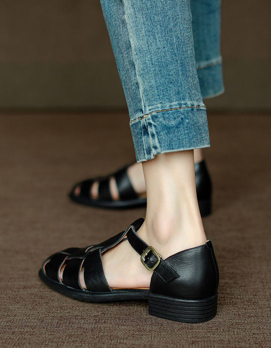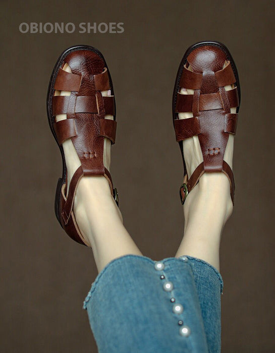 Sandalias tejidas de cuero estilo británico vintage con punta puntiaguda