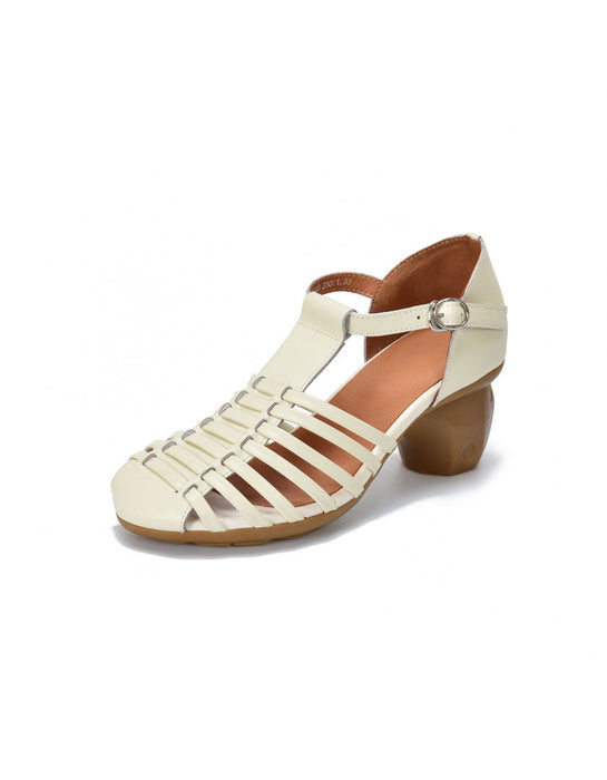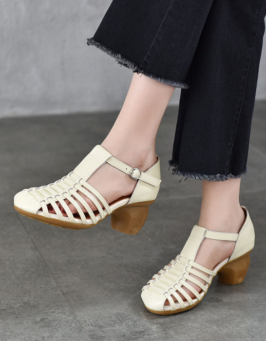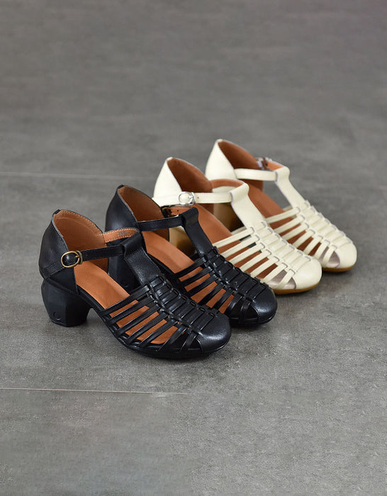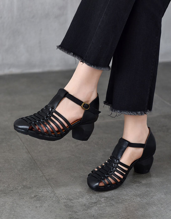 Zapatos de cuero retro hechos a mano con tacón grueso para primavera