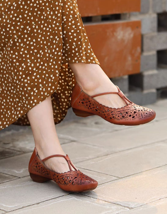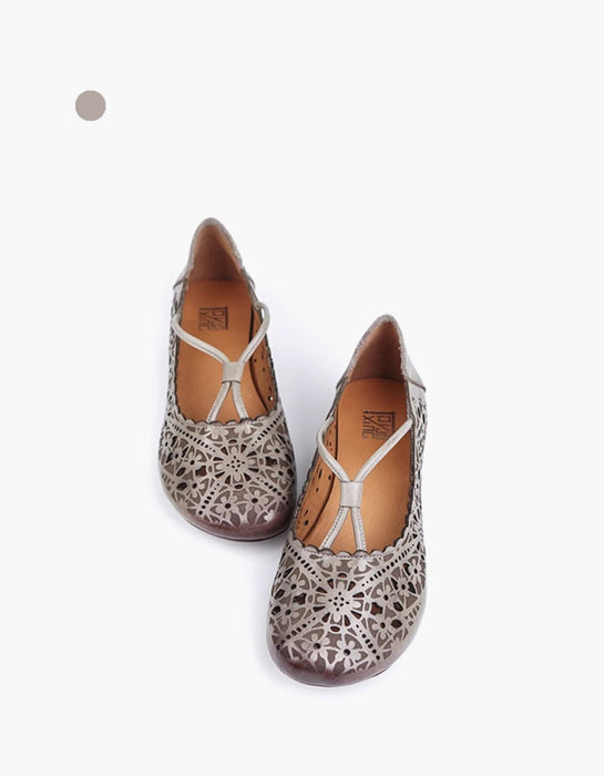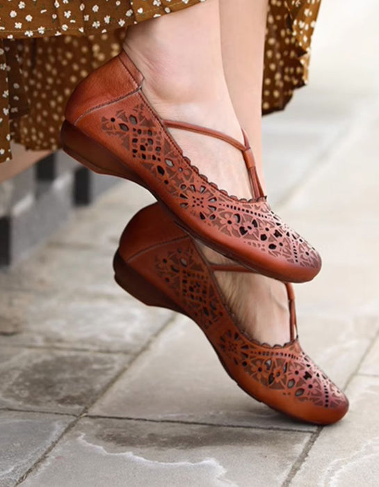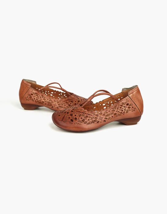 Zapatos planos retro huecos tallados a mano de cuero auténtico