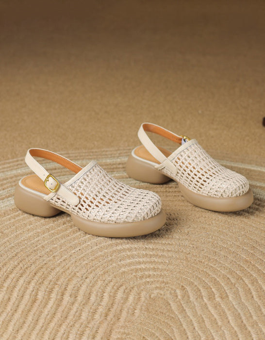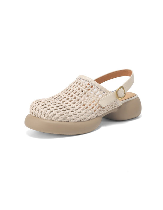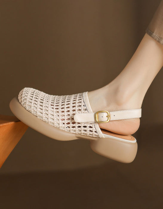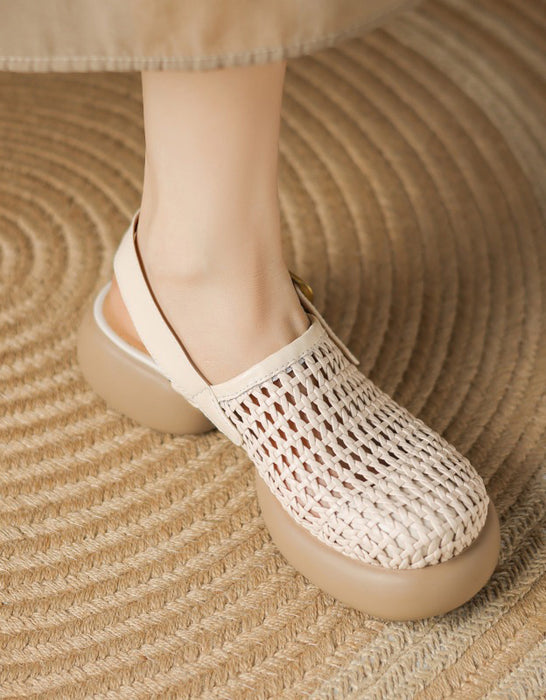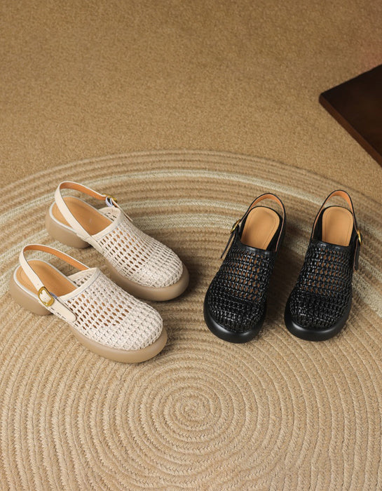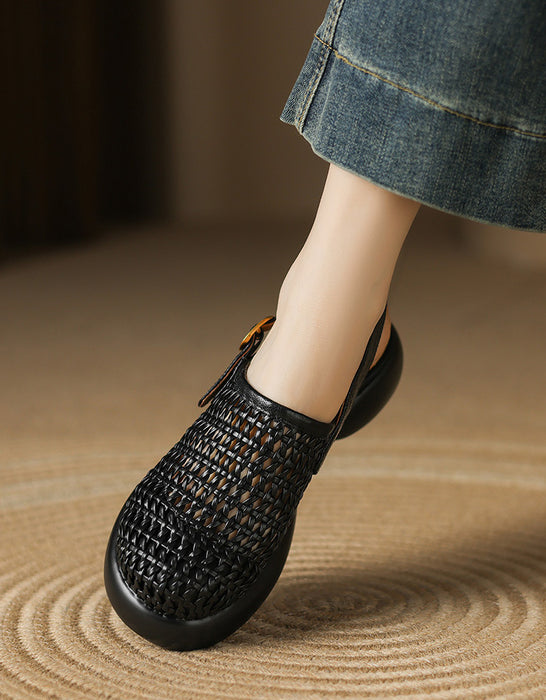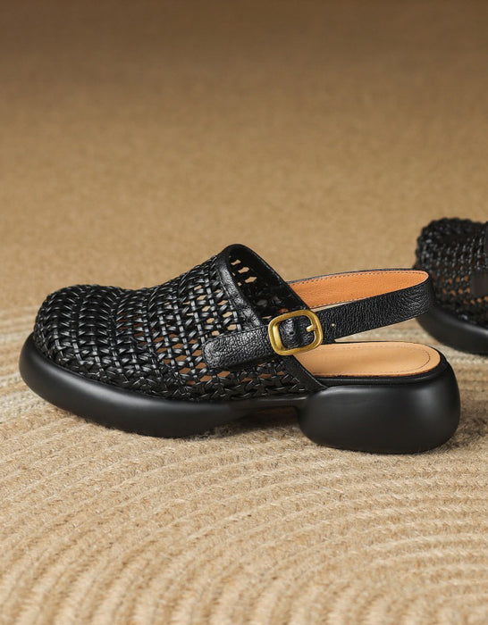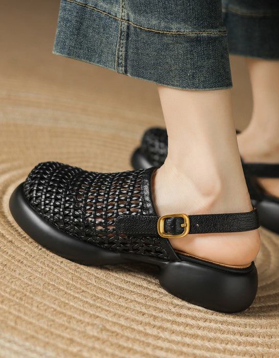 Real Leather Woven Breathable Closed-toe Sandals Slingback