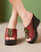 Zapatillas de cuña estilo oriental con flores de cuero retro