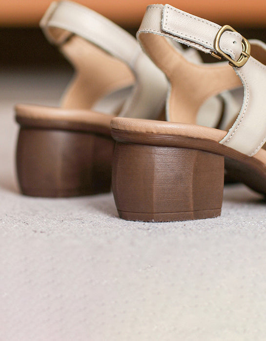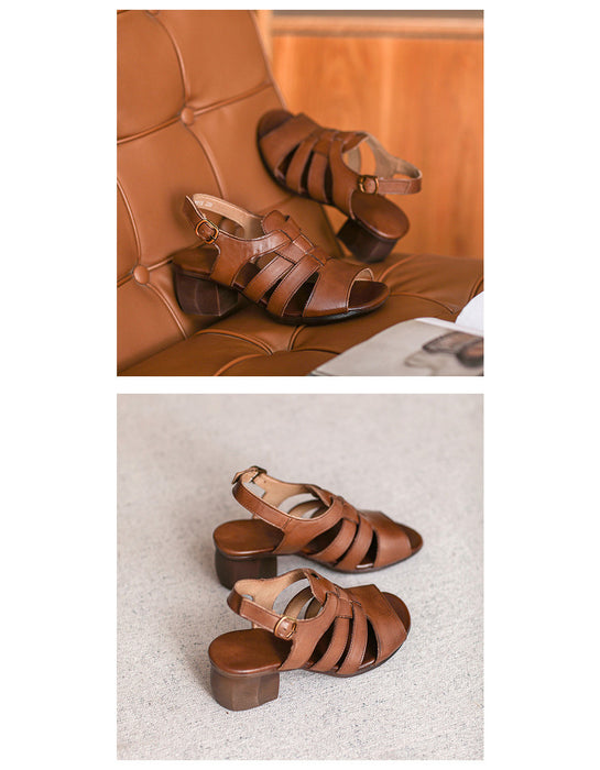 Sandalias de tacón grueso con punta abierta y tira trasera de cuero estilo retro