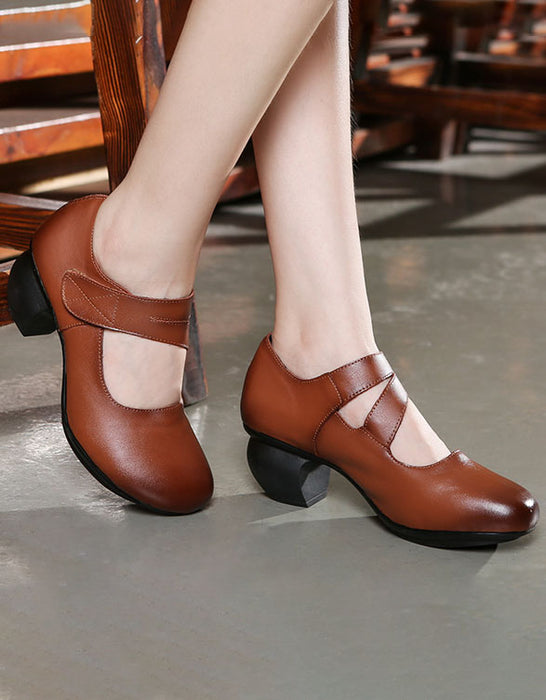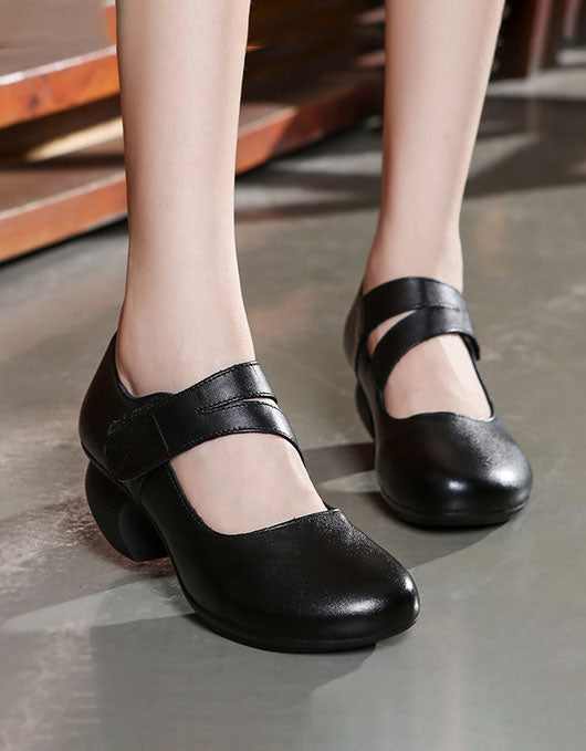 Tacones gruesos con velcro en la parte delantera y punta redonda