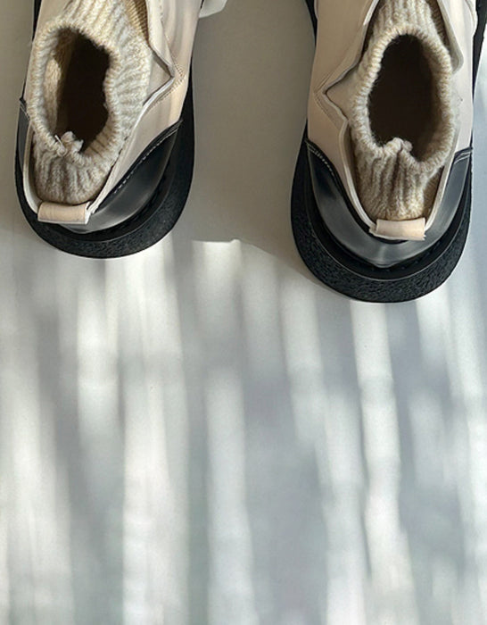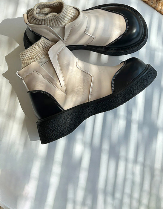 Botas de invierno retro de cuero con puntera ancha