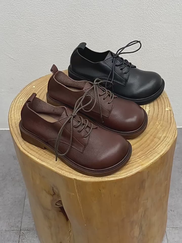 Zapatos de cuero suave con cordones y punta ancha, cómodos