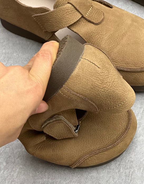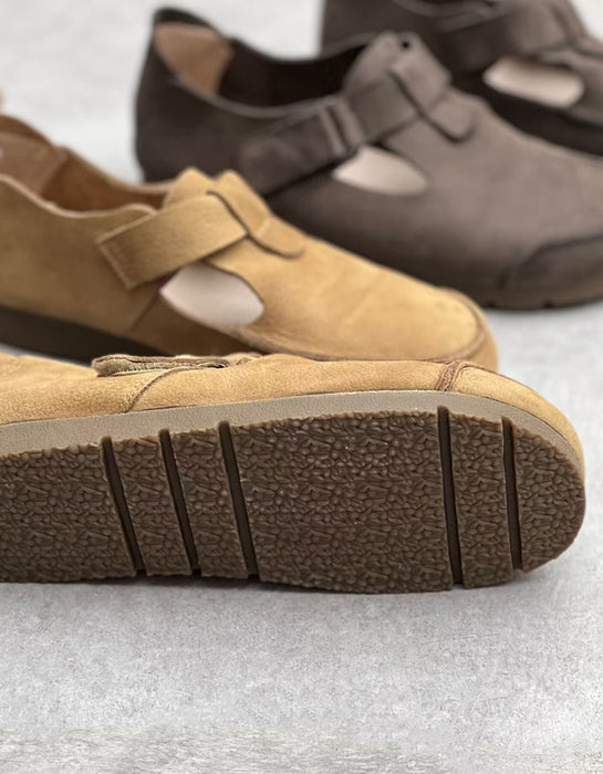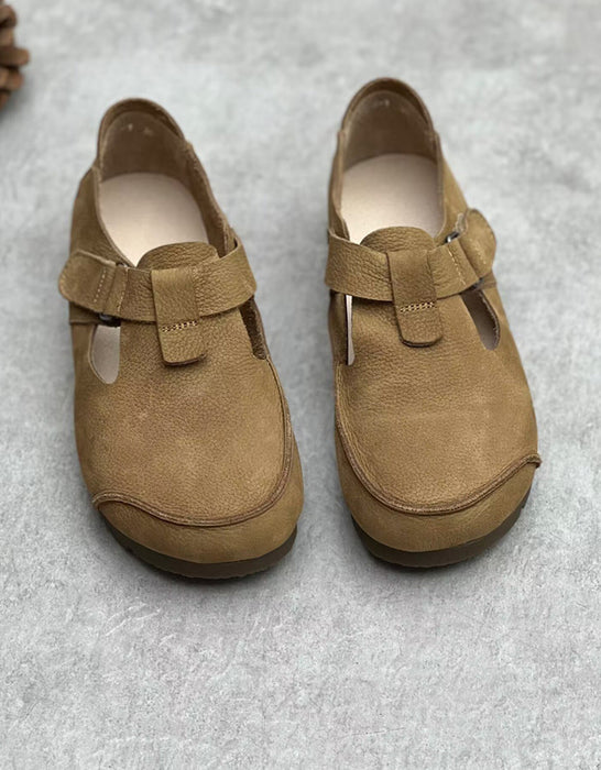 Zapatos planos retro hechos a mano de cuero suave con punta redonda