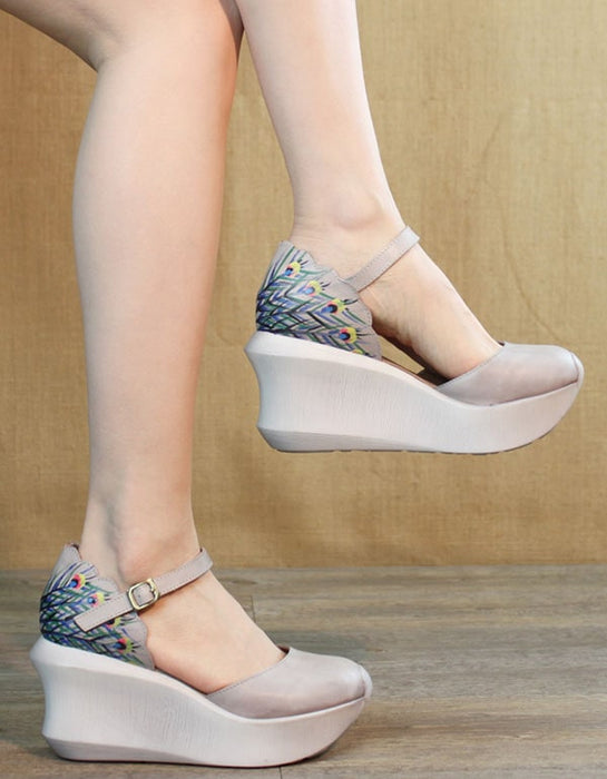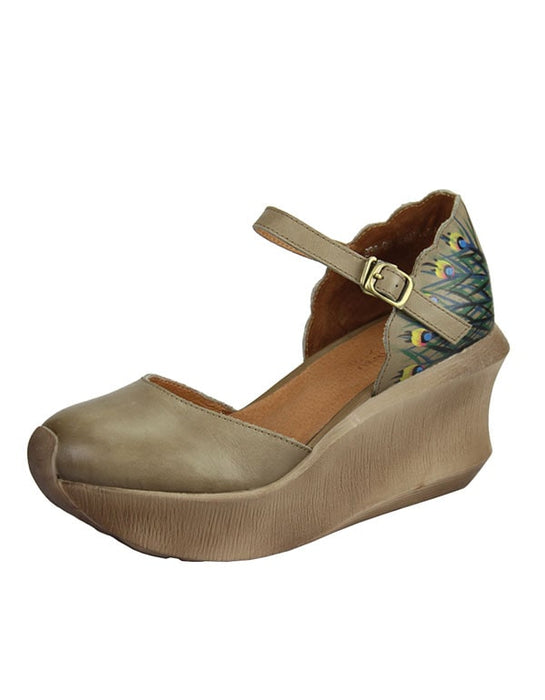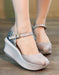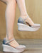 Zapatos de verano retro de cuero con tacón de cuña para mujer
