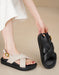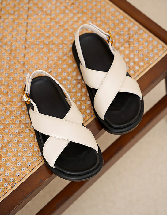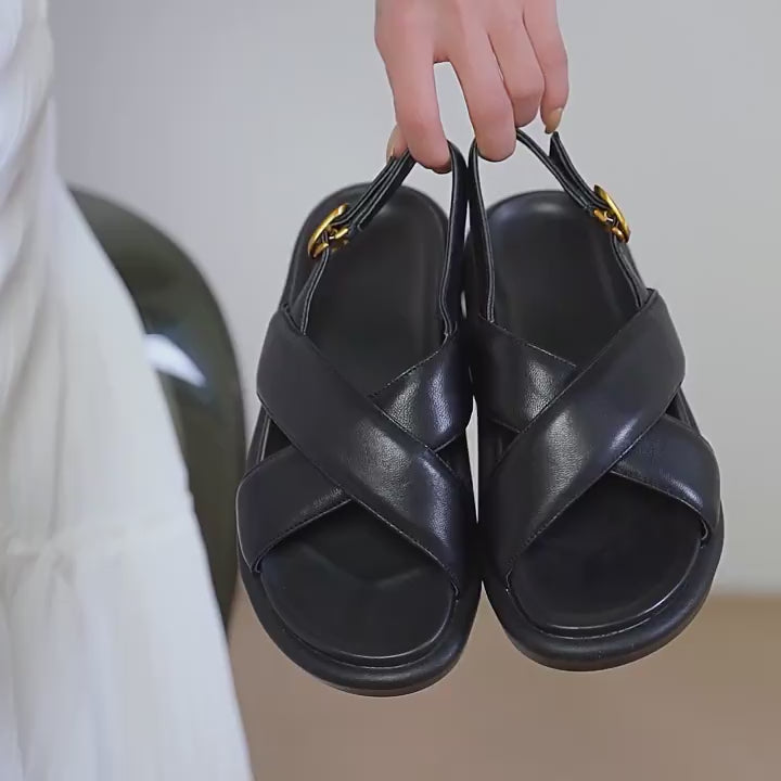 Sandalias de tiras cruzadas de piel de oveja con tacón grueso y tira trasera