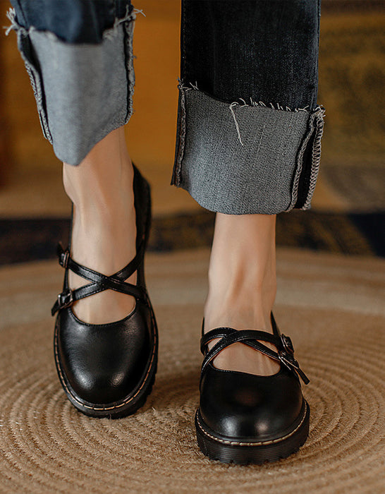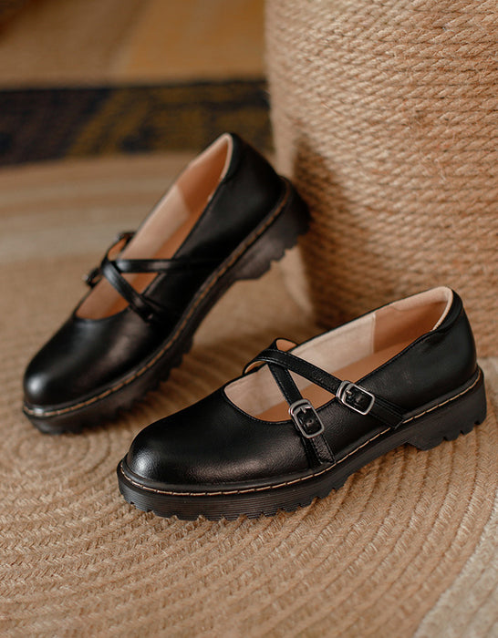 Zapatos Mary Jane con hebilla cruzada vintage para primavera y otoño