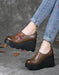 Zapatos de cuña retro hechos a mano, antideslizantes e impermeables